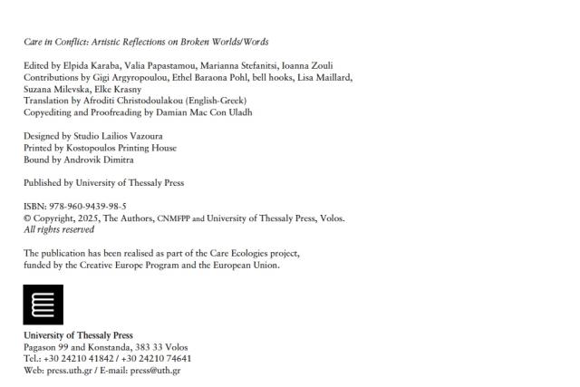 artistic and curatorial tools, on the expansion of feminist knowledge and practice, focusing on the contemporary social and political field, and on the creation of new synergies and connections. Our theory/research aims to extend feminist scholarship and practice in the social field, to support the political potency of feminist discourse and practices that are interdisciplinary and intersectional, interweavving diverse systems of formal and non-formal knowledge in relation to public space and public claims. On this moment of rapid transformations of public space, the emergence of all the more urgent claims in public space, which are related to multiple and persistent crises, economic, sociopolitical, humanitarian, the crisis of contemporary democracy and the rising of reactionary powers within the global imperative and its material parameters, a feminist techoaesthetic theory becames particularly urgent and critical. Thus, we work on developing the ground for an innovative and provocative theory and praxis.